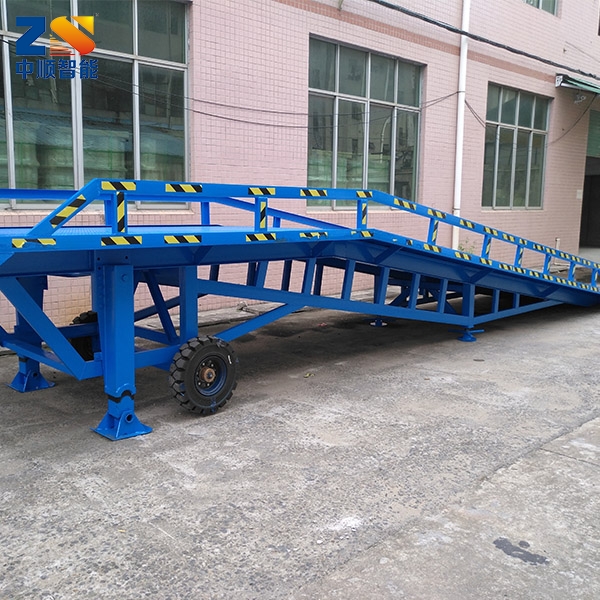 移動式登車(chē)橋是與叉車(chē)配合使用的貨物裝卸輔助設備(bèi),可根據汽車(chē)車(chē)廂的高低調節高度,叉車(chē)可以直接通過本設備(bèi)駛入車(chē)廂内部進行貨物的批量裝卸,僅需單人作業,即可實現貨物的快速裝卸。它使企業減少大量勞力,提高工作效率,獲取更大經濟效益。