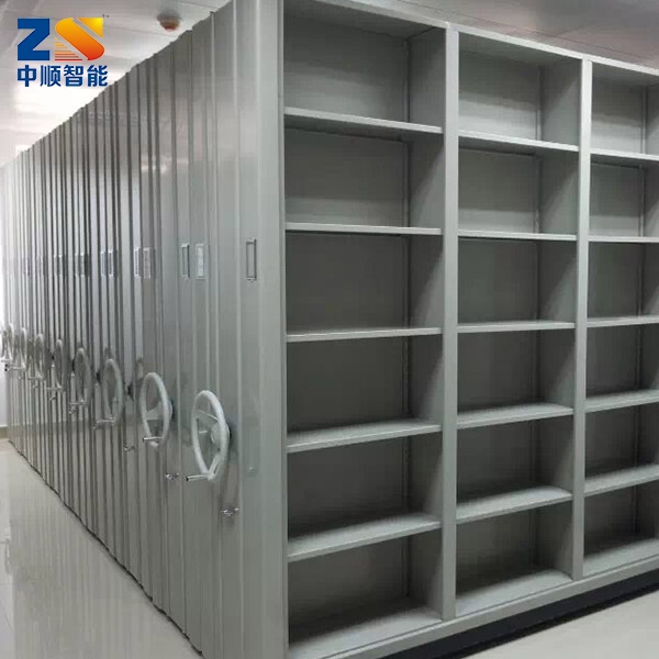 密集櫃主要由軌道、底座、立柱(闆式)、擱闆、挂闆、側(cè)靠闆、背靠闆、頂闆、防塵(chén)闆、護闆、門闆、傳動機構、防傾倒、防震、防塵(chén)、防鼠、制動、緩沖、目錄卡及傳動裝置、密封裝置組 成: